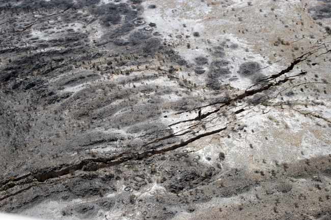 By Sara Goudarzi, LiveScience Staff Writer posted: 19 July 2006 01:00 pm ET Aerial photo of the cracks and faults that formed in September, 2005. These cracks formed above the zone where molten rock rose into the plate, reaching to within approximately 1.2 miles of the surface. Credit: Julie Rowland, University of Auckland.